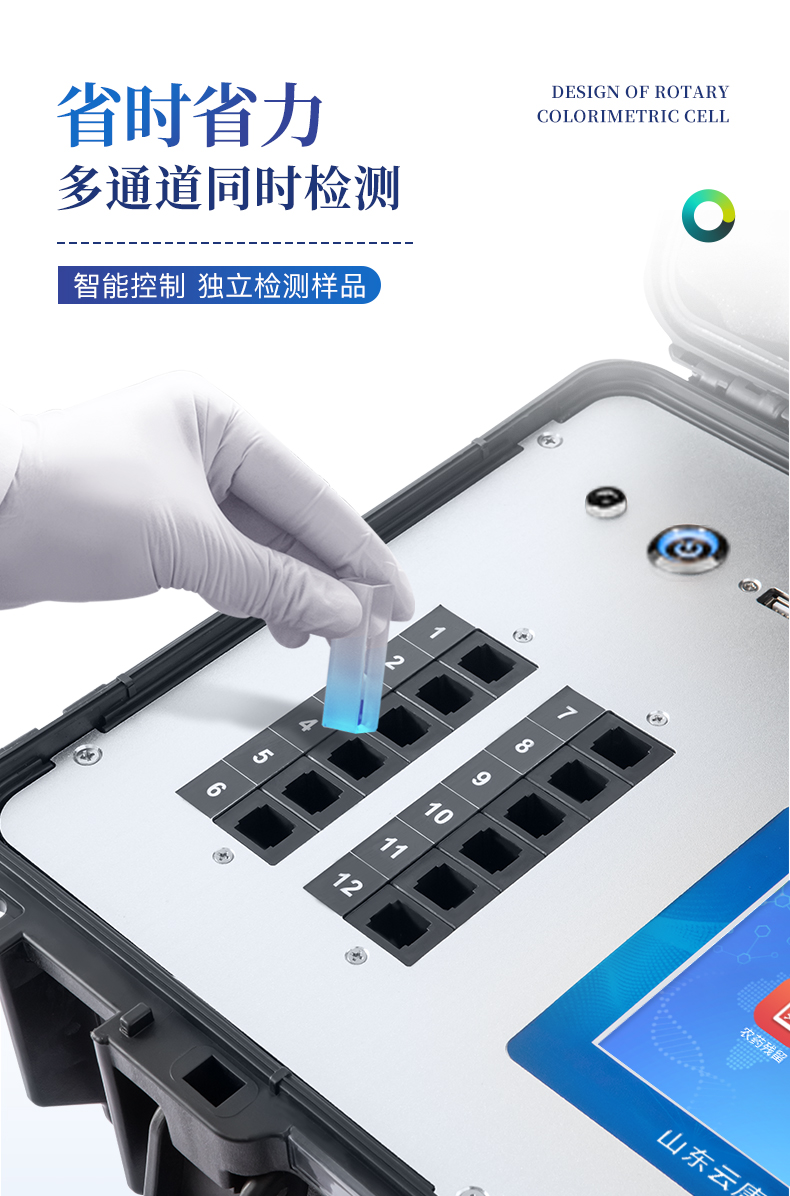 5、檢測通道:12個檢測通道,可以同時測試多個樣品,循環檢測,即放即檢,每個樣品由程序控制分別獨立工作,不會互相干擾。