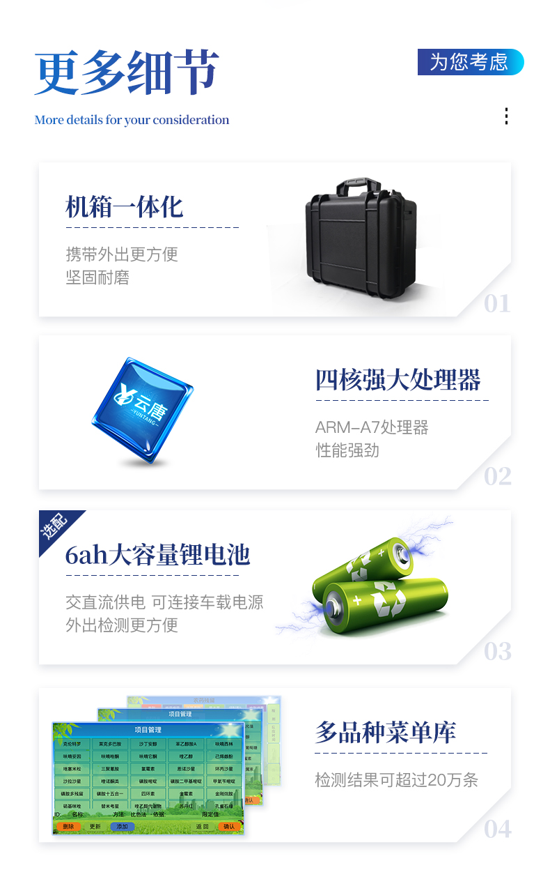 農藥殘留速測儀光源采用進口超高亮發光二極管,具有低功耗、高精度、穩定性強、光源可控可以關掉不使用的光源,響應速度快等優點··· 熱線:133-7109-8225 二維碼