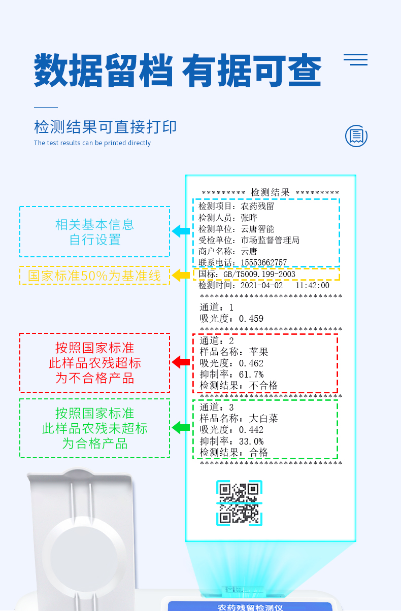 農藥殘留分析儀智能操作系統,采用更加人性化操作,主控采用多核處理器,主頻1.88Ghz,運轉速度更快速,穩定性更強。 熱線:133-7109-8225 二維碼