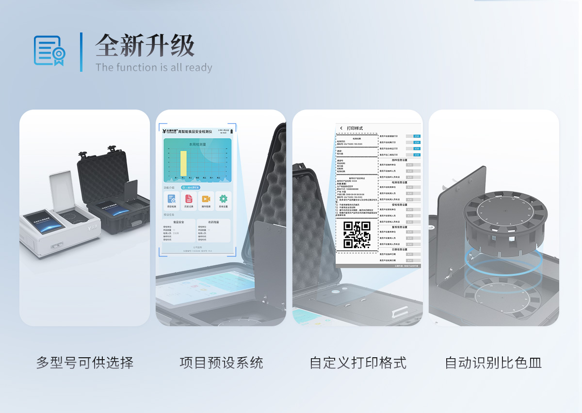 9.7、打印系統:內置全新打印機,新創自定義打印方式,可按需靈活勾選控制:產品合格證(國家農業部標準要求),二維碼,抽樣信息、檢測信息,受檢信息、復核信息、抽樣日期、檢測日期等信息的打印。
