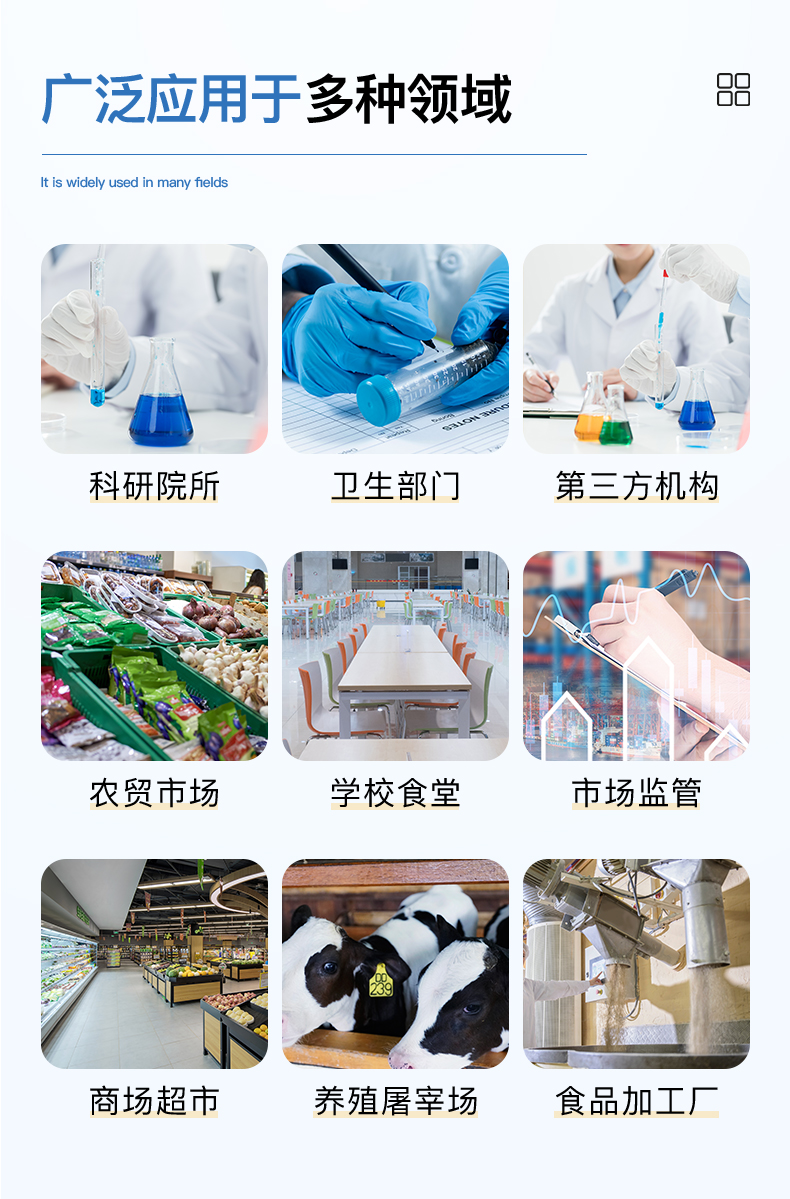 茶葉檢測(cè)儀器為集成化食品安全快速檢測(cè)分析設(shè)備,目前已于食藥監(jiān)局、衛(wèi)生部門、高教院校、科研院所、農(nóng)業(yè)部門、養(yǎng)殖場(chǎng)、屠宰場(chǎng)、食品肉產(chǎn)品深加工企業(yè)及檢驗(yàn)檢疫部門等單位廣泛使用。