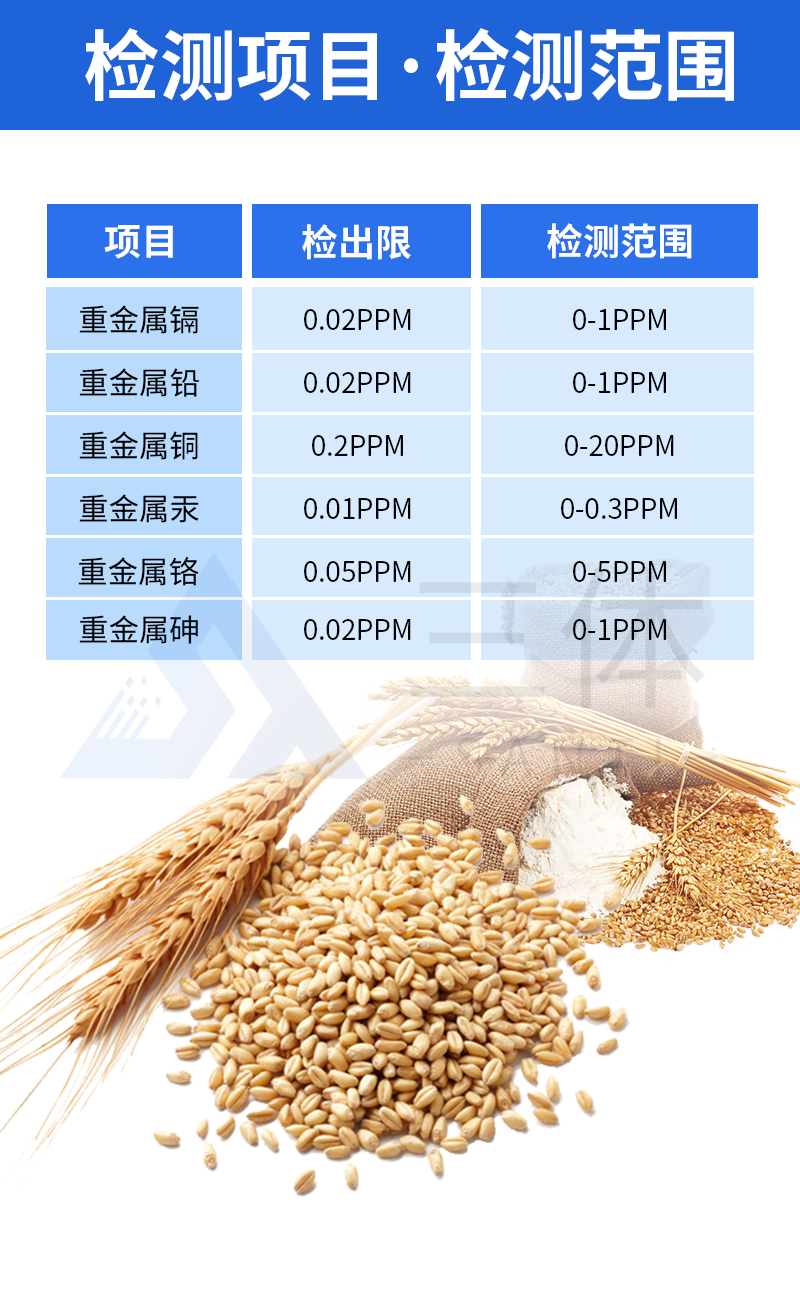 食品重金屬檢測設備廣泛應用于大米、糧谷、果品、蔬菜、藥材、水質、水產品中重金屬鉛、鎘、六價鉻、汞、砷、鐵、鎳、鋁的快速檢測,檢測項目可根據客戶的需求定制。