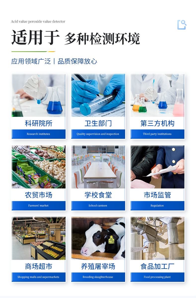 該高精度食品安全檢測(cè)儀為集成化食品安全快速檢測(cè)分析設(shè)備,廣泛應(yīng)用于食藥監(jiān)局、衛(wèi)生部門(mén)、高教院校、科研院所、農(nóng)業(yè)部門(mén)、養(yǎng)殖場(chǎng)、屠宰場(chǎng)、食品肉產(chǎn)品深加工企業(yè)、檢驗(yàn)檢疫部門(mén)等單位使用。