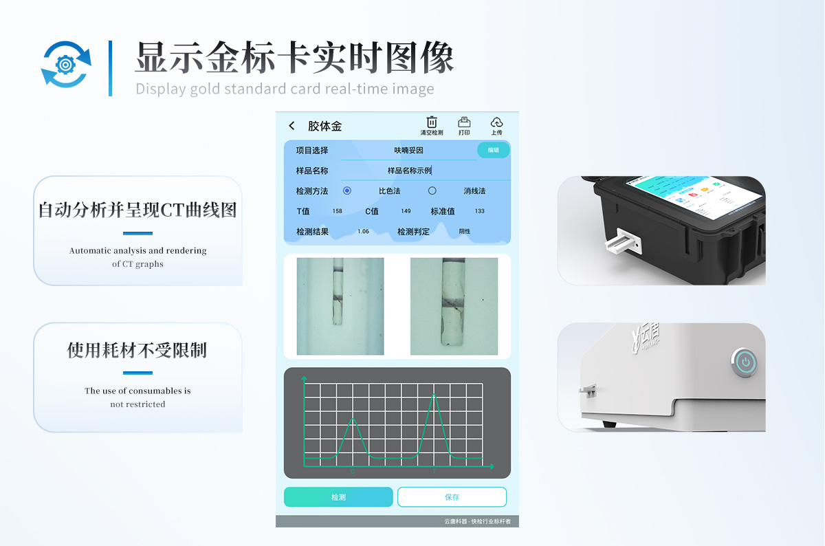 兼容市場上其他膠體金卡,使用耗材不受限制,極大增強(qiáng)用戶使用體驗(yàn)。